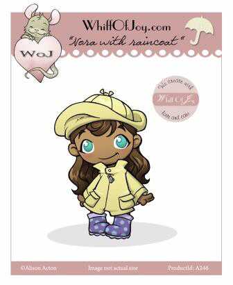 Nora im Regenmantel, ca. 8,7 x 5,5 cm, Alison Acton,unmontierter, unzugeschnittener, tief geprägter roter Stempelgummi, Whiff of Joy