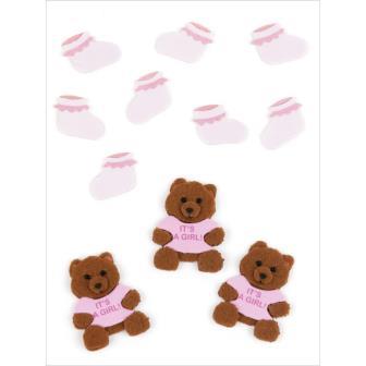 3 Bärchen It´s a girl und 8 Babyschuhe rosa, Bärchengröße ca. 2,5 cm, EKSuccess