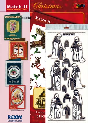 1 Vorlagenbuch Weihnachten, 28-seitig mit Farbdrucken, 15 Stickerbogen Weihnachten, transparent-silber, 1 Anleitung mit Bastelbeispielen, Reddy