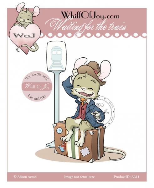 Warten auf den Zug, ca. 6,2 x 8,2 cm, unmontierter, unzugeschnittener, tief geprägter roter Stempelgummi, Whiff of Joy Für vergrößerte Darstellung bitte Bild anklicken