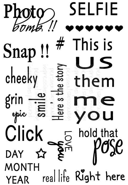 Photo Sentiments, 23 Stempel, größter Stempel ca. 4,5 x 2,4 cm