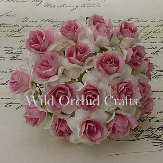 5 Stk. Rosen wild roses white/pink centre 30 mm
