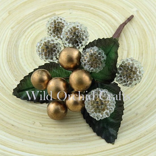 1 Bund m. 12 Beeren in 4 versch. Größen und 3 Blättern, Wild Orchid Crafts