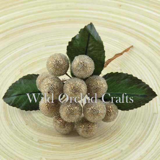 1 Bund m. 12 Beeren und 3 Blättern, Beerengröße ca. 1,4 cm, Wild Orchid Crafts