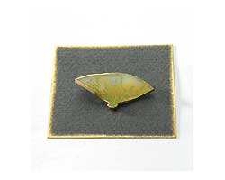 So macht man aus einem großen Stempelabdruck ein kleines Plastikstück, das sich dann sogar zu einem Anhänger, Ohrring oder einer Brosche verarbeiten läßt.